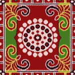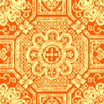 Détails du mandala "Tenjukoku Shûchô", l'exemplaire de textile brodé le plus ancien du Japon (622) et créé en l'honneur un prince Shôtoku qui a largement contribué à la diffusion de bouddhisme.