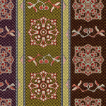 Les motifs variés de ces tissus (jôdaigire) révèlent avec une nette évidence l'influence d'un héritage culturel moyen-oriental (Perse sassanide (226-651), actuelle Iran, et chinois. Des motifs floraux (lotus, pivoines, clématites, mauve) et des végétaux complexes (vigne) en arabesques, en médaillons ou en rosaces encadrent et accompagnent des animaux bien réels (oiseaux, canards mandarins, tortues…), ou des créatures mythiques chinoises (dragons, phoenix, chiens-lions…).